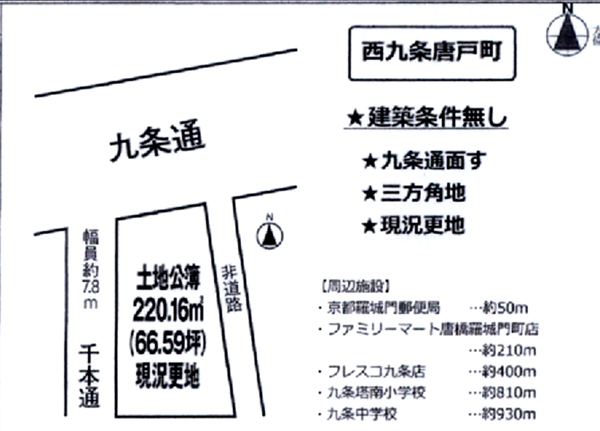 京都市南区 九条千本交差点周辺 土地売り情報 京都市南区西九条唐戸町1JR京都線『西大路駅』徒歩15分価格:1憶円土地:公簿・220.16平方メートル 約66.59坪商業地域:80/600%グーグル位置情報京都不動産情報 担当:モリタ迄お問い合わせ下さい。I.C倶楽部 不動産情報問い合わせフォームI.C倶楽部事務局 電話:075-583-3337 FAX:050-3488-2205 コメント コメントを書く コメントを書く コメント送信