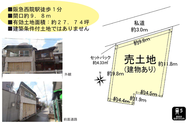 ※私道幅員約3メートルに間口約9.8㍍接道・有効土地面積:約27.74坪