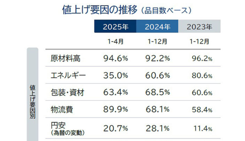 企業は、原材料費や物流費の高騰分を価格に転嫁することで、