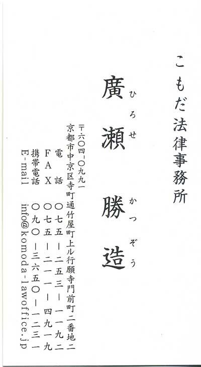 ホームロイヤー推進 廣瀬勝造迄 気軽にお問い合わせ下さい。