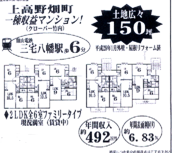 京都市左京区 三宅八幡駅周辺 アパート一棟売り 京都市左京区上高野畑町28-14叡山鉄道『三宅八幡駅』徒歩5分価格:7,200万円土地:公簿・496.17平方メートル 約150.09坪建物:軽量鉄骨造スレート葺2階建築年月:2001年1月第一種低層住居専用地域:40/60%グーグル位置情報京都不動産情報 担当:モリタ迄お問い合わせ下さい。I.C倶楽部事務局 電話:070-5656-9831 FAX:050-3488-2205 コメント コメントを書く コメントを書く コメント送信